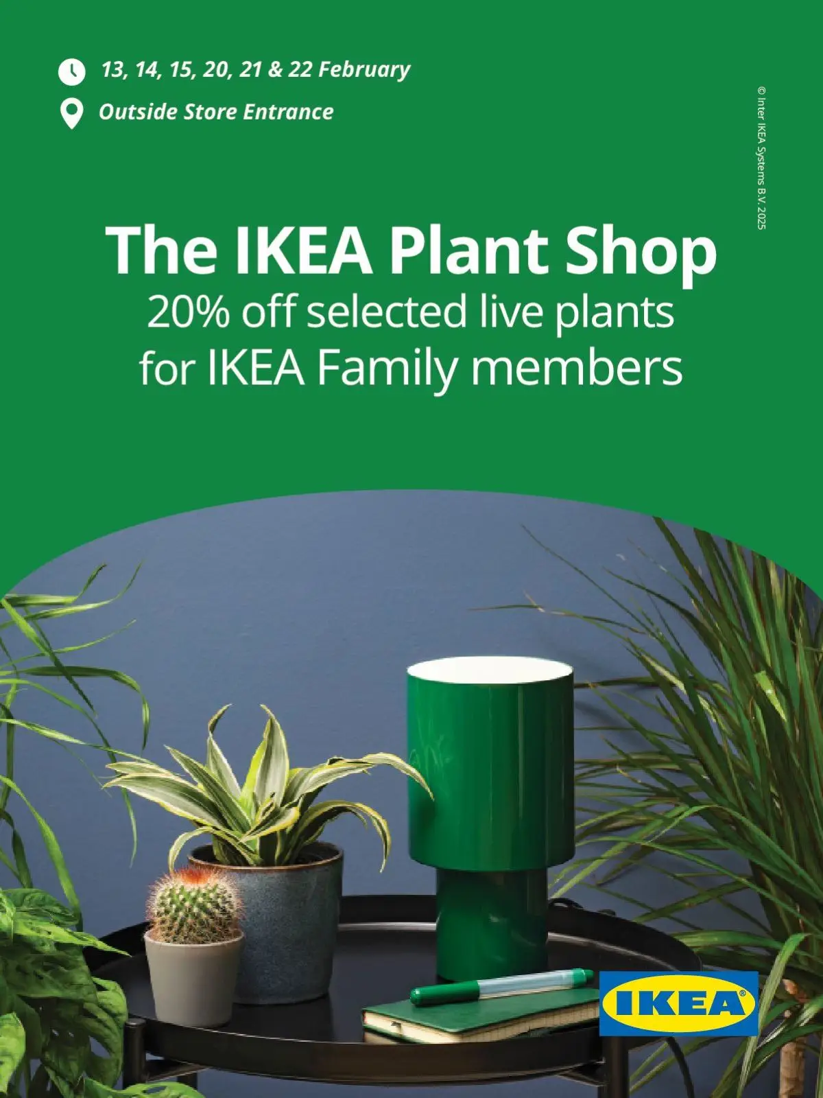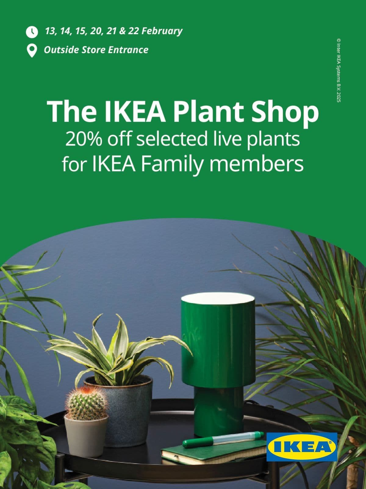 20% off selected live plants for IKEA Family members.
